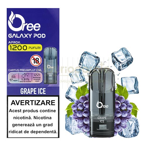 Capsula Oree Galaxy Grape Ice 17MG este o alegere inspirata pentru cei care prefera aromele fructate, intense si racoritoare. Pachetul contine o capsula preumpluta de unica folosinta, conceputa pentru a oferi pana la aproximativ 1200 de pufuri. Atunci cand lichidul este epuizat, capsula se inlocuieste cu una noua, ceea ce permite continuarea utilizarii fara complicatii. Cu o capacitate de 2 ml si o concentratie de nicotina de 17 mg/ml, aceasta capsula ofera un echilibru bun intre intensitate si confort in utilizare.