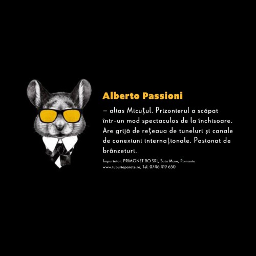 Prizonierul a scapat intr-un mod spectaculos de la inchisoare. Are grija de reteaua de tuneluri si canale de conexiuni internationale. Pasionat de branzeturi.