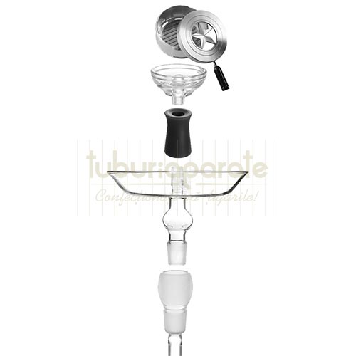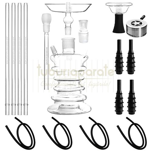 Info: narghilea confectionata din sticla de inalta calitate si otel inoxidabil.