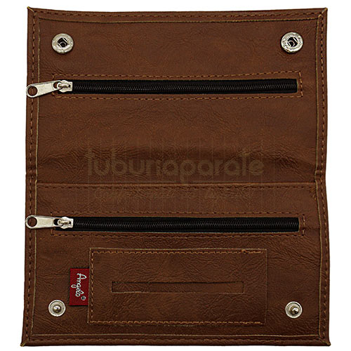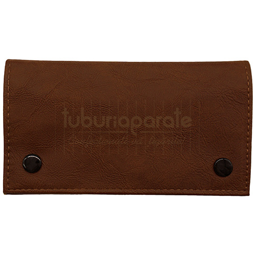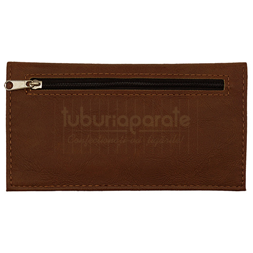 Portofel pentru tutun, confectionat din piele ecologica de culoare maro.