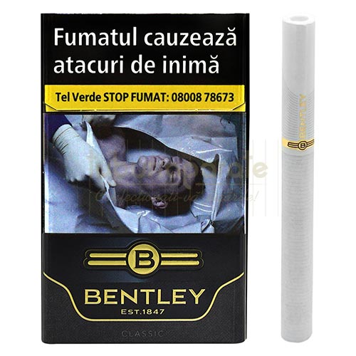 Aceasta maturare atenta adauga profunzime si caracter, ducandu-ti simturile intr-o calatorie gustativa inconfundabila. Fiecare fum dezvaluie notele moi si rotunde ale acestui amestec premium, creand o placere blanda pentru adevaratii cunoscatori ai tutunului. Dar rafinamentul Bentley Black nu se opreste doar la continutul sau. Sunt ambalate intr-un nou pachet cu colturi rotunde, ce atrage atentia. Pachetul este o extensie a elegantei sale interioare si-ti completeaza perfect experienta de fumat. Cand alegi Bentley Black, alegi o rutina de fumat cu adevarat sofisticata, care te va inconjura cu aroma sa racoroasa si gustul mocnit.