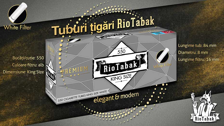 Etichete: tuburi tigari ieftine, riotabak, filtru alb, cartel, korona,